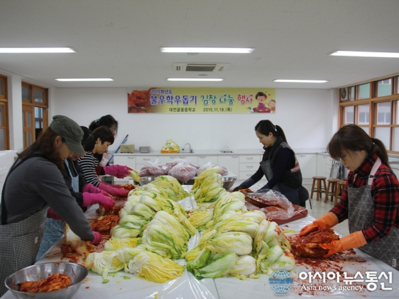 지난 19일 대전글꽃중학교는 1층 가사실에서 '사랑의 김장담그기' 행사를 가졌다.(사진제공=대전글꽃중학교)