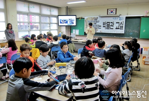 지난 18일 경북 영덕 강구초등학교가 경보화석박물관이 마련한 '찾아가는 박물관 교실'을 운영하고 있다.(사진제공=강구초등학교)