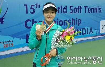 제15회 인도세계정구선수권대회에서 금메달을 차지한 충북 옥천군청 정구실업팀 김지연 선수.(사진제공=옥천군청)