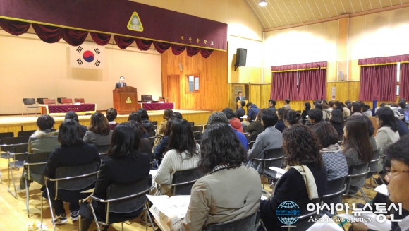 19일 인천서부교육지원청이 계산중학교에서 올해 중학교 자유학기제 미운영교 교사 161명을 대상으로 과목별 교사 직무연수를 진행하고 있다.(사진제공=인천서부교육지원청)