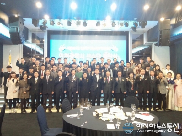 19일 인천시 기능경기위원회는 라마다 송도호텔에서 제50회 전국기능경기대회 인천시 선수단 해단식을 진행하고 기념촬영을 하고 있다.(사진제공=인천시청)