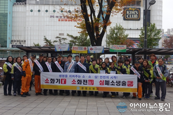 19일 오후 경기 광명소방서는 철산역 및 상업지구 일대에서 '소화기 Day(우리집 소화기 1대, 감지기 1대는 생명을 9합니다)'각종 안전점검의 날 행사를 전개했다.(사진제공=광명소방서)