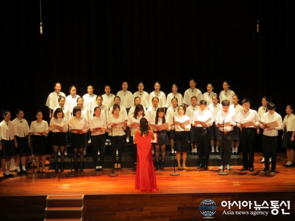 지난 17일 인천시 남구 청소년합창단이 신세계백화점 인천점 문화홀에서 제10회 정기연주회를 진행하고 있다.(사진제공=인천남구청)