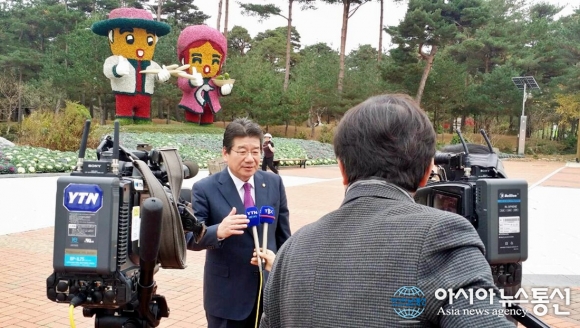19일 오후 강석호 의원(새누리당 경북영양영덕봉화울진군)이 경북 울진군 근남면 엑스포공원 영상관에서 열린 "울진~분천 간 순환철도 조기 구축을 위한 포럼"에 참석한 후 YTN방송과 인터뷰를 하고 있다.(사진제공=강석호 의원 사..