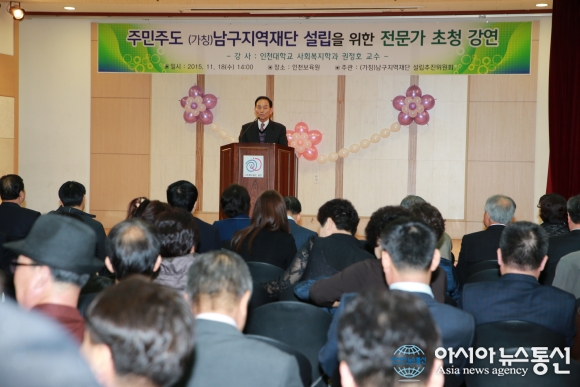 18일 학익동 인천보육원에서 주민주도 (가칭)남구지역재단 설립을 위한 전문가 초청 강연을 진행하고 있다.(사진제공=인천남구청)