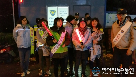 지난 18일 대전동부경찰서는 대전 동구 가오동 주택가 및 상가밀집지역 일대에서 범죄예방을 순찰 활동과 가정폭력 근절을 위한 홍보활동을 실시했다.(사진제공=대전동부경찰서)