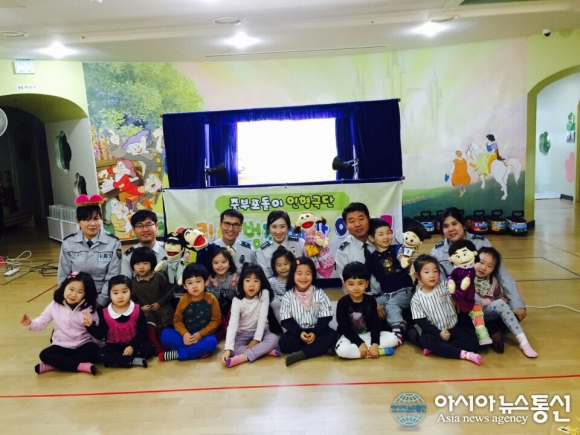 19일 대전중부경찰서는 대전성모어린이집에서 어린이집원생 대상으로 포돌이 인형극을 실시했다.(사진제공=대전중부경찰서)