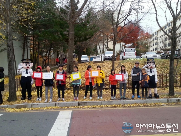 19일 대전동부경찰서는 대전용운초등학교 앞에서 안전한 등굣길을 만들기 위한 캠페인을 펼쳤다.(사진제공=대전동부경찰서)
