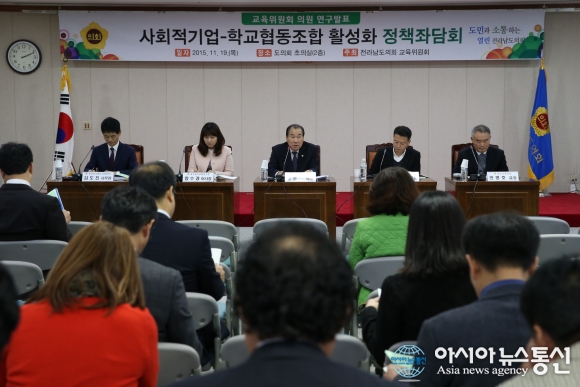 19일 전남도의회 초의실에서 전남도교육위원회가 주관한 사회적 기업 활성화를 위한 정책 좌담회가 열렸다.(사진제공=전남도의회)