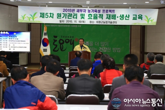 19일 오후 경남 의령군농업기술센터 3층 회의실에서 의령군 새부자 육성을 위한 '원가관리 및 효율적 재배․생산 교육'을 하고 있다.(사진제공=의령군청)