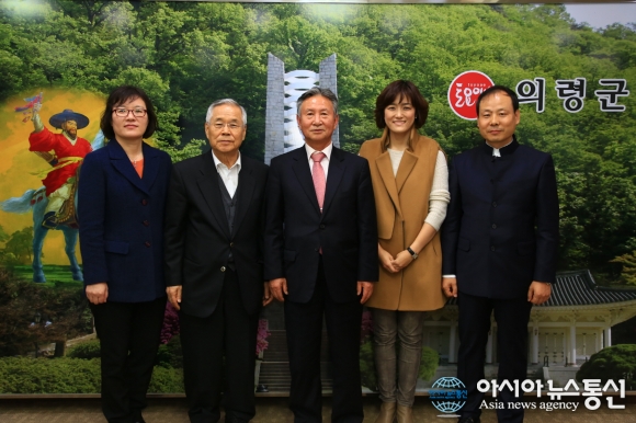 18일 전국경제인연합회 산하 자유와창의교육원 송병락 원장 등 관계자들이 의령군을 방문, 경제문화자원 관광상품화 방안에 대한 의견을 교환한 후 기념사진을 촬영하고 있다.(사진제공=의령군청)