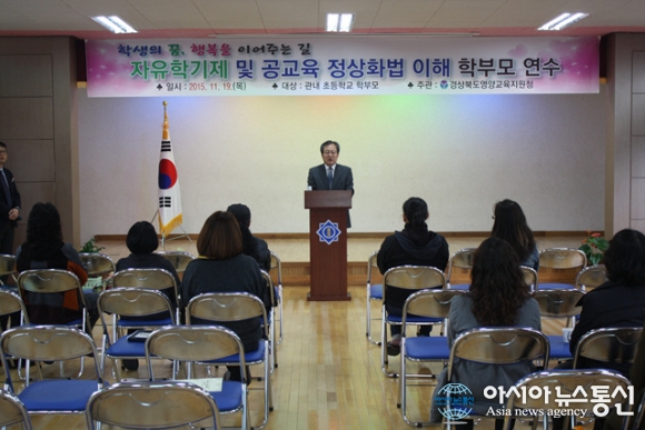 경북 영양교육지원청(교육장 김인달)이 19일 영양중앙초등학교 강당에서 '자유학기제 및 공교육 정상화법 이해' 주제로 연수을 실시했..