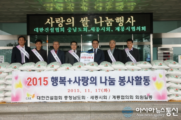 지난 17일 대한건설협회 충남세종지회(회장 박해상)는 계룡시를 찾아 저소득 및 소외계층을 돕기 위한‘사랑의 쌀’150포(20kg)를 기탁했다. (사진제공=계룡시청)