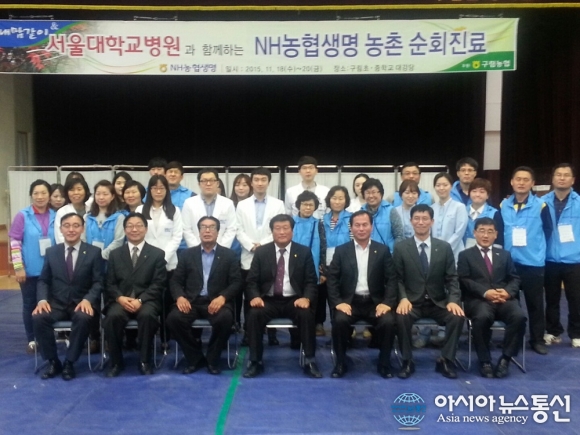 19일 서울대병원 의료진이 전북 순창군 구림농협에서 농촌순회 무료진료를 실시한 뒤 기념촬영을 하고 있다.(사진제공=농협 전북지역본부)