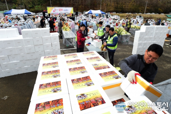 진주시 '사랑의 김장' 나눔행사 모습.(사진제공=진주시청)