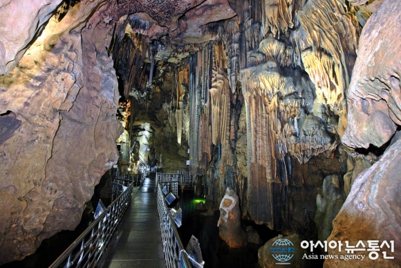 경북도가 '동해안 국가지질공원' 인증 신청에 나서는 경북 울진의 성류굴 내부 모습. 성류굴은 5000만년 전에 형성된 것으로 추정하는 천연 석회동굴로서 지난 1963년에 천연기념물 제155호로 지정관리되고 있는 울진의 생태관광 명..