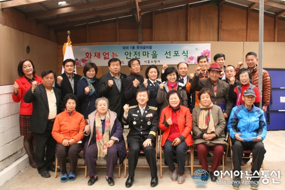 19일에 경기 시흥소방서는 시흥시 대야1통 웃대골마을을 화재 없는 안전마을로 지정하고 명예소방관 위촉과 함께 소화기 등 기초 소방시설을 보급했다.(사진제공=시흥소방서)