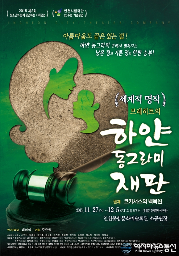 오는 27일 인천시립극단이 청소년과 함께 공연하는 하얀 동그라미 재판(각색 배삼식, 연출 주요철)을 인천종합문화예술회관 소공연장에서 공연한다. 사진은 공연 포스터.(사진제공=인천종합문화예술회관)