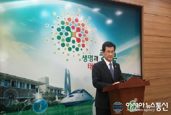 19일 이시종 충북도지사가 도청 브리핑실에서 중부고속도로 확장사업에 대한 충북도의 입장을 밝히고 있다./아시아뉴스통신=백운학 기자