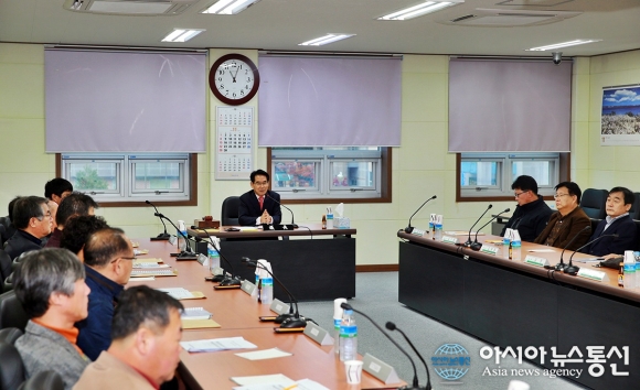 18일 오전 경북 울진군 근남면 소재 한울원전민간환경감시센터 회의실에서 있은 '제7기 위촉식'에서 임광원 위원장(울진군수)가 신임 위원들에게 위촉장을 전달한 후 "한울원전 가동과 건설에 따른 방사능 환경 영향 등 원전 ..