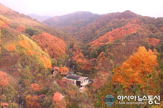 최근 만추(晩秋)의 풍광이 절정에 이른 충북 영동의 민주지산자연휴양림 전경.(사진제공=영동군청)