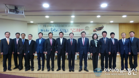26일 새누리당 원내대표 원유철(경기 평택갑)의원과 새누리당 원내대변인 유의동(경기 평택을)국회의원은 국회 의원회관 제 2소회의실에서 제2차 ‘황해-실크로드 익스프레스 대토론회’를 개최했다.(사진 왼쪽 아홉 번째 원유철 ..