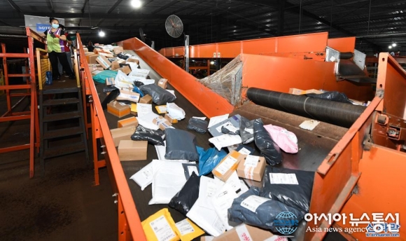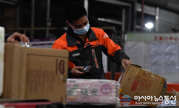 中 하이커우 물류센터, '솽스이' 앞두고 불철주야 작업
