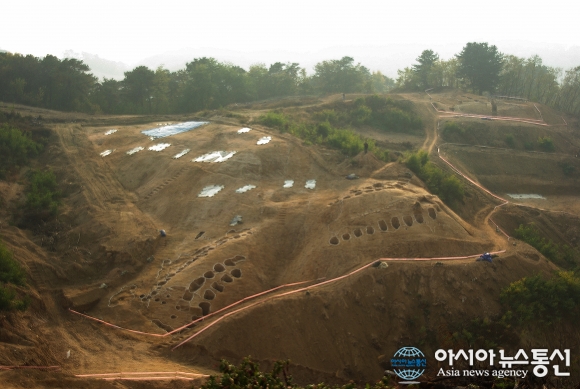[안성 도기동]발굴된 목책성 전경