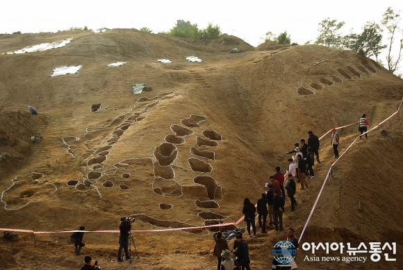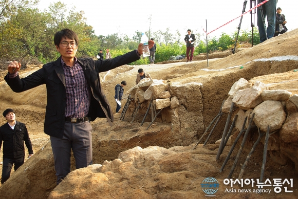 [안성 도기동] 목책성 발굴현장 안내하는 조사단