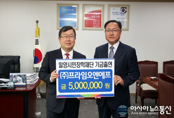 ㈜프라임오앤에프, 밀양시민장학재단 장학기금 출연