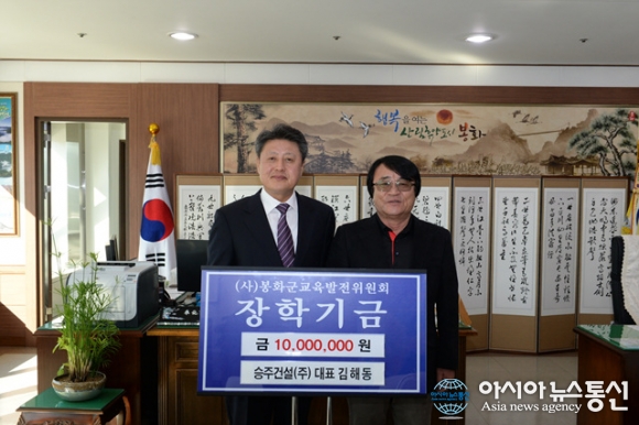김해동 승주건설(주) 대표, 봉화군에 장학금 1000만원 기탁