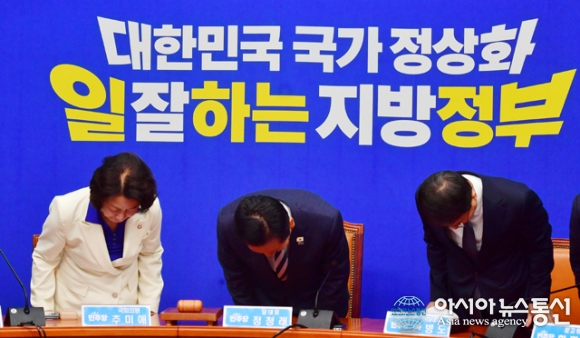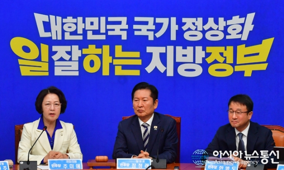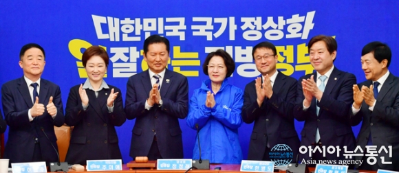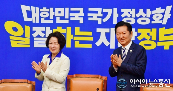 [아통포토] 기념촬영하는 정청래 더불어민주당 대표와 추미애 경기도지사 ..