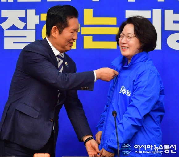 [아통포토] 정청래 민주당 대표와 추미애 경기도지사 후보 기념 쵤영