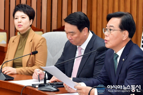 [아통포토] 문진석 원내대표 직무대행 원내대책회의 발언