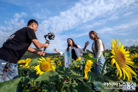 [아통포토] 中 허베이 쭌화, 가을 맞이 해바라기 '장관'