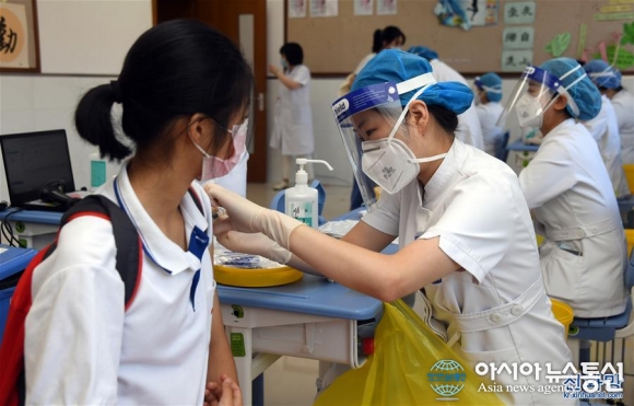 [아통포토] 중국 위잉중학교, 코로나19 백신 접종