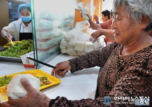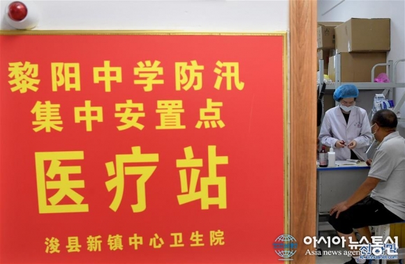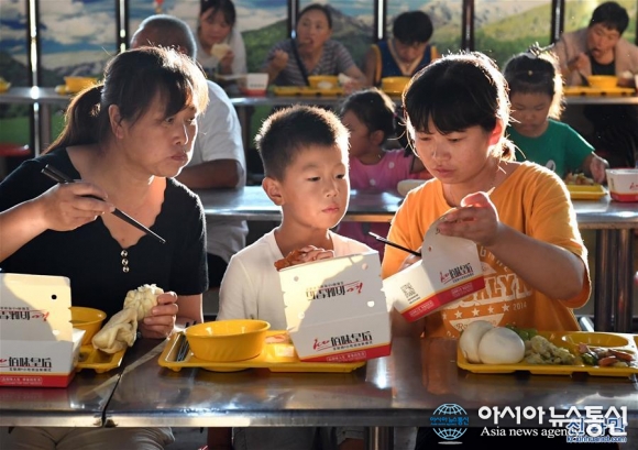 [아통포토] 중국 폭우 대피소 저녁 식사 풍경