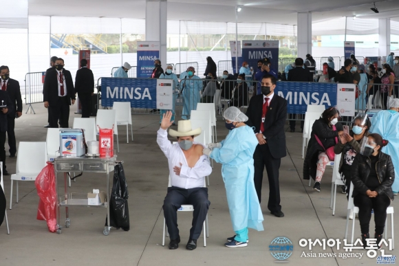 [아통포토] 카스티요 페루 대통령, 中 시노팜 코로나19 백신 접종