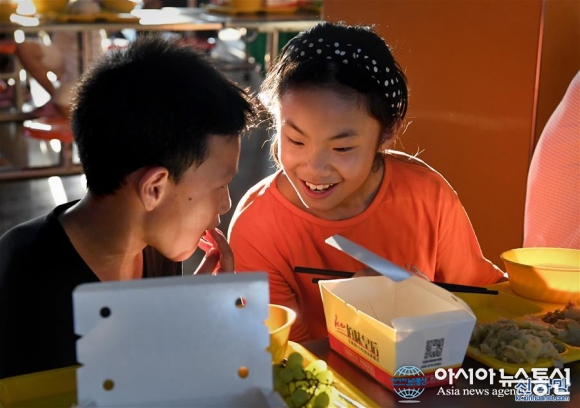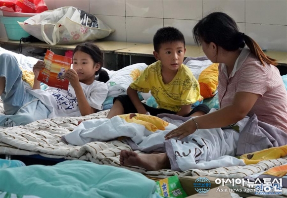[아통포토] 중국 폭우 대피소, 어린이의 저녁 식사
