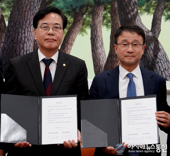 [아통포토] 합의문 들고 기념 촬영 여야 원내대표