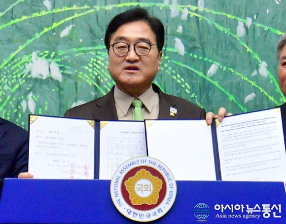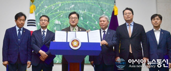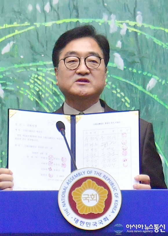 [아통포토] 합의문 들고 인사말 하는 우원식 의장