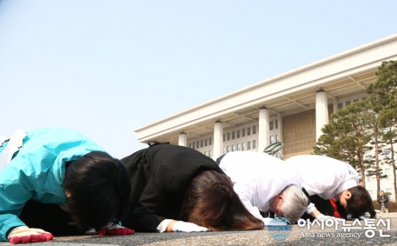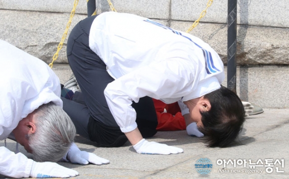 [아통포토] 정치개혁 촉구 삼보일배하는 조국혁신당