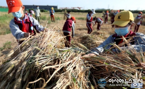 [아통포토] 밀 수확 체험을 하며 소중함을 배우는 초등학교 학생들