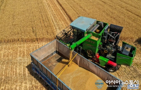 [아통포토] 밀 수확시기를 맞아 '구슬땀'을 흘리는 허베이성 농부들