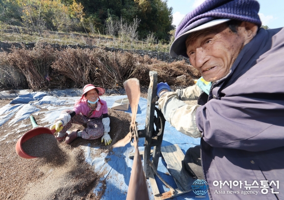 함양군, 들깨 수확하는 노부부