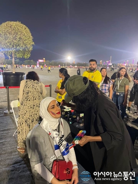 [아통포토] 카타르 월드컵, 974스타디움 앞에서 무료 페이스페인팅 진행
