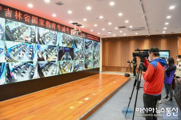 [아통포토] 중국 수능 '가오카오'..투명한 시험 감독을 위해 모니터..