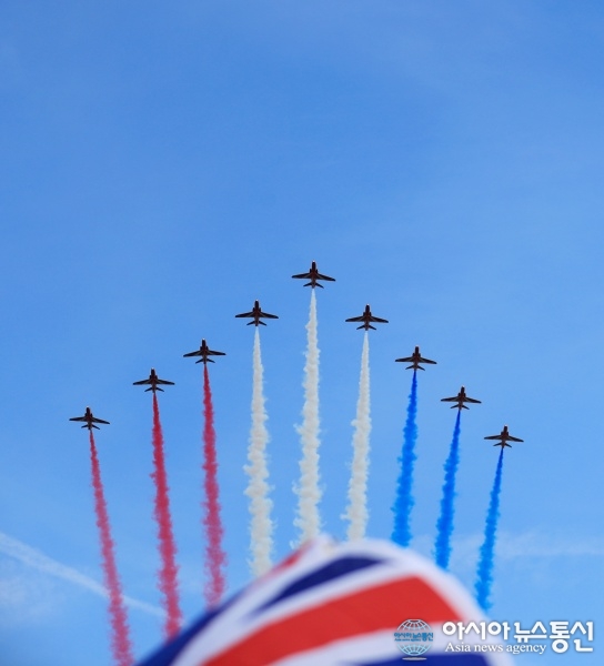 [포토뉴스] 영국 여왕 탄생 70주년..곡예 비행팀이 영국 버킹엄 궁전 상공 비..