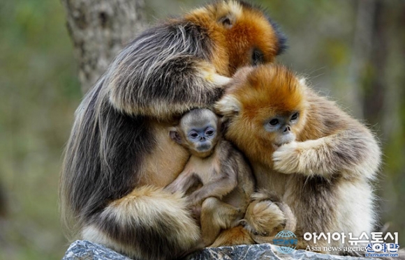 中 쓰촨 자연보호구에서 포착한 황금원숭이
