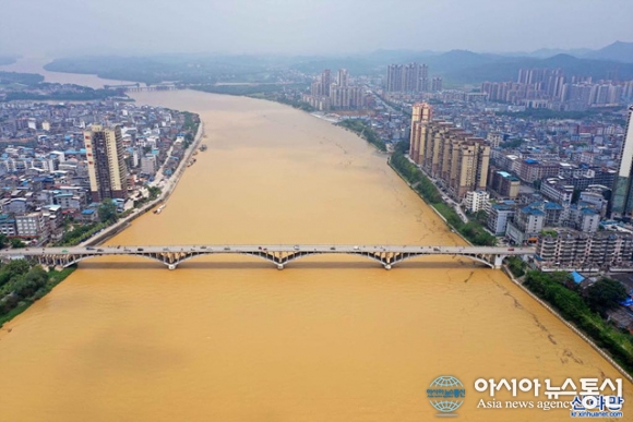 폭우로 노란 흙탕물이 된 中 룽장